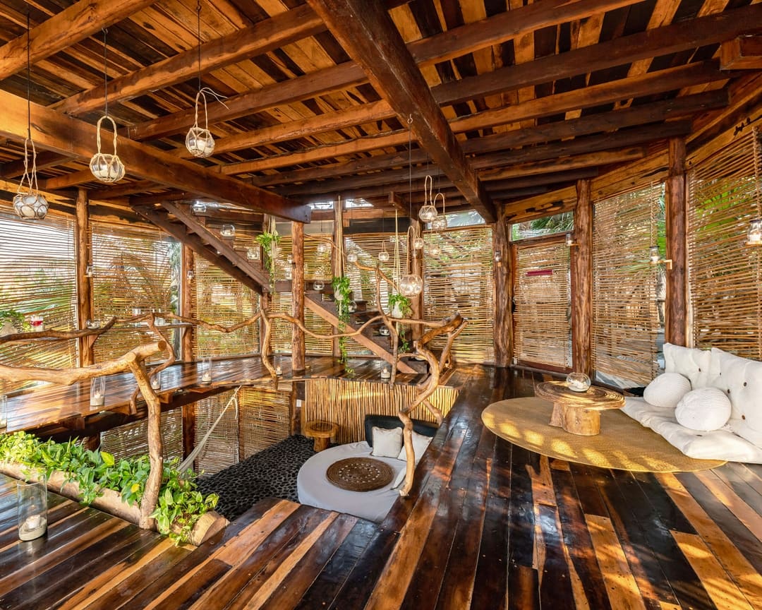 Organic forms and natural materials create a space of calm and renewal.