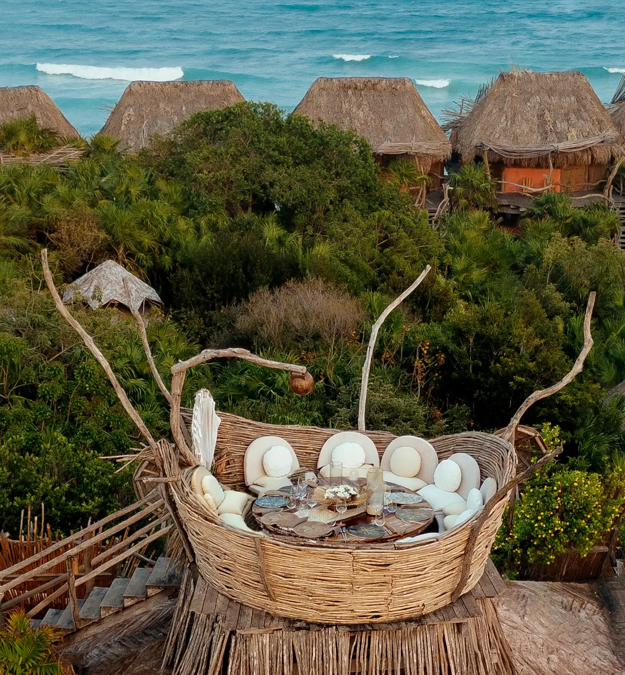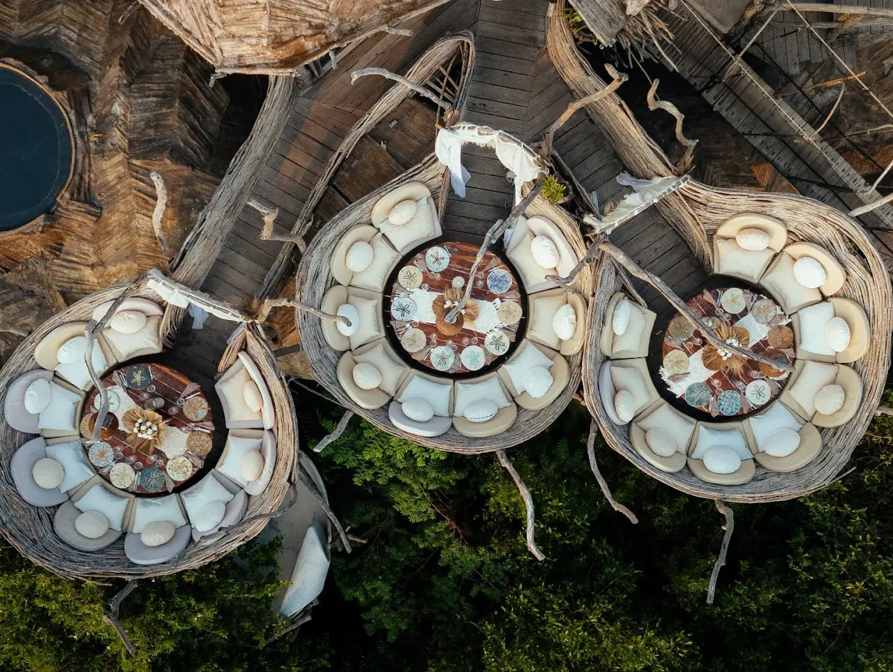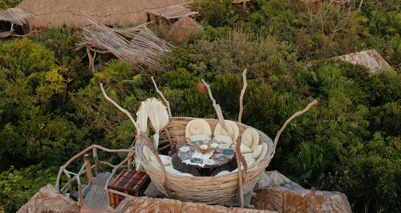 Nest Tables are private tables with 360-degree panoramic views of the Tulum jungle where you can enjoy their exclusivity from 6:00 pm (opening hour) to 10:30 pm.
