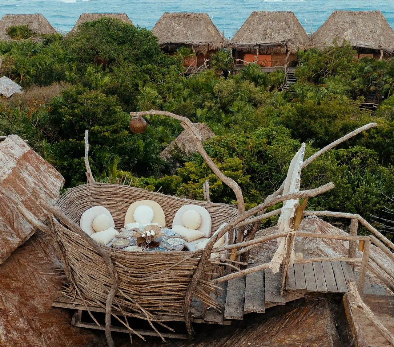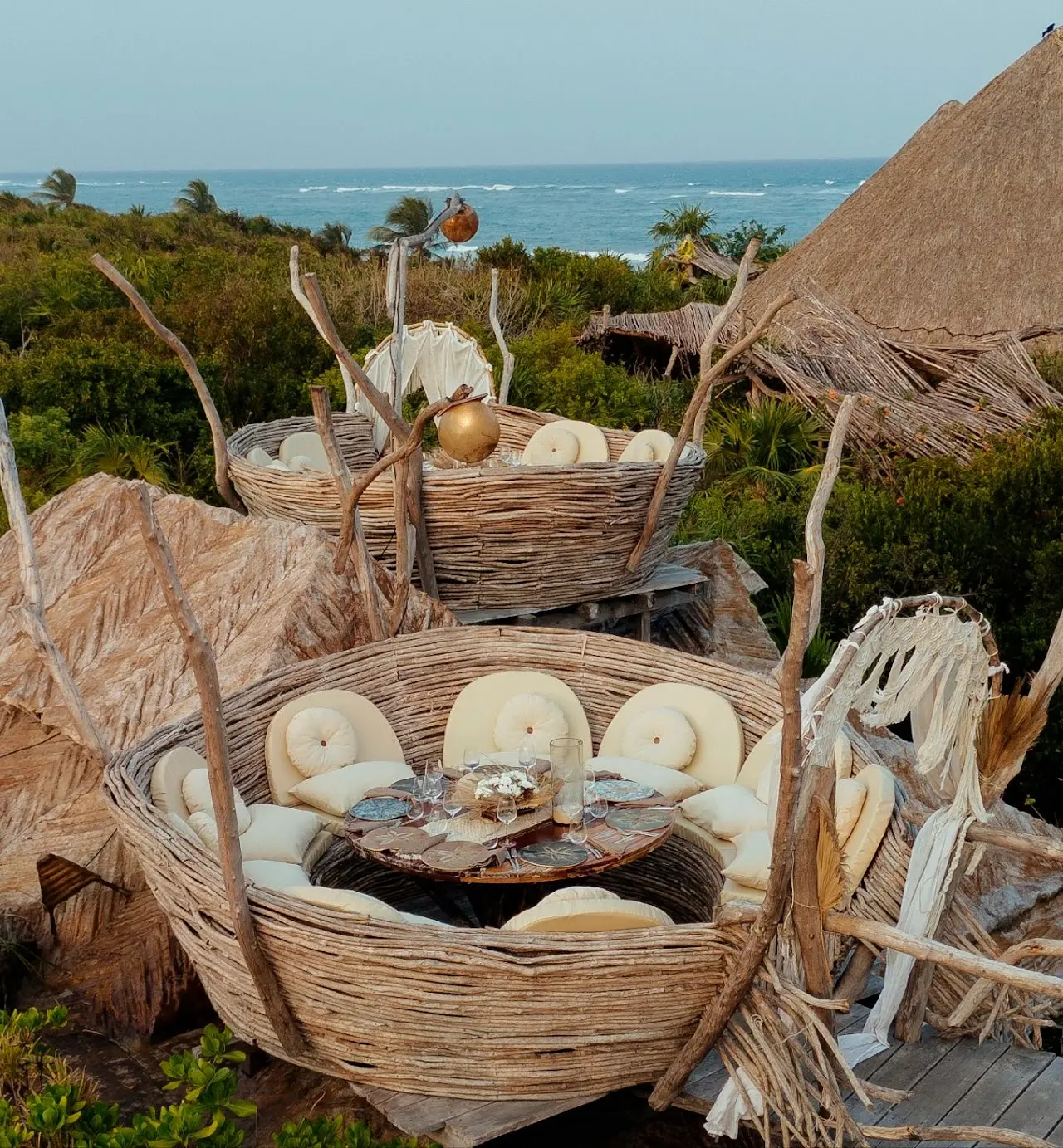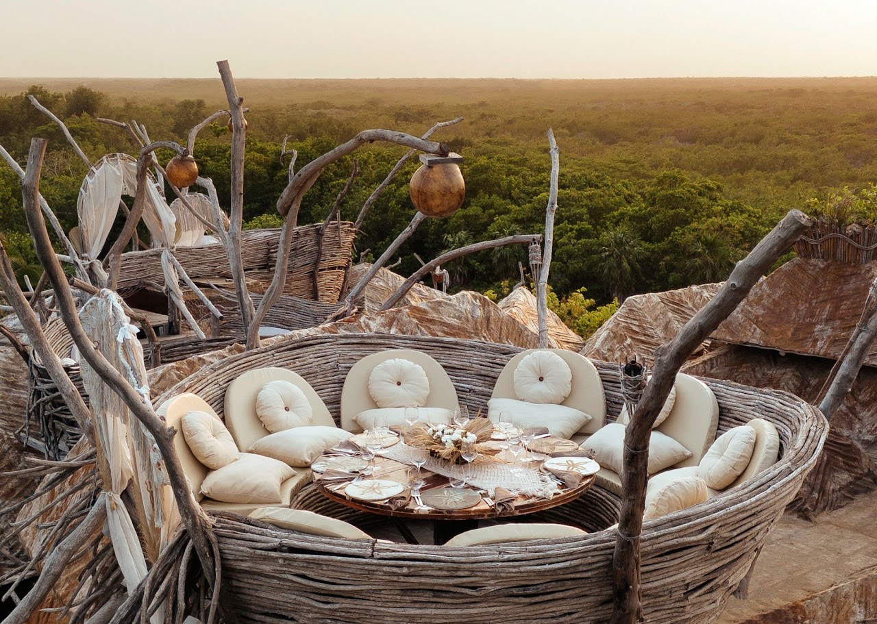 Nest Tables are private tables with 360-degree panoramic views of the Tulum jungle where you can enjoy their exclusivity from 6:00 pm (opening hour) to 10:30 pm.